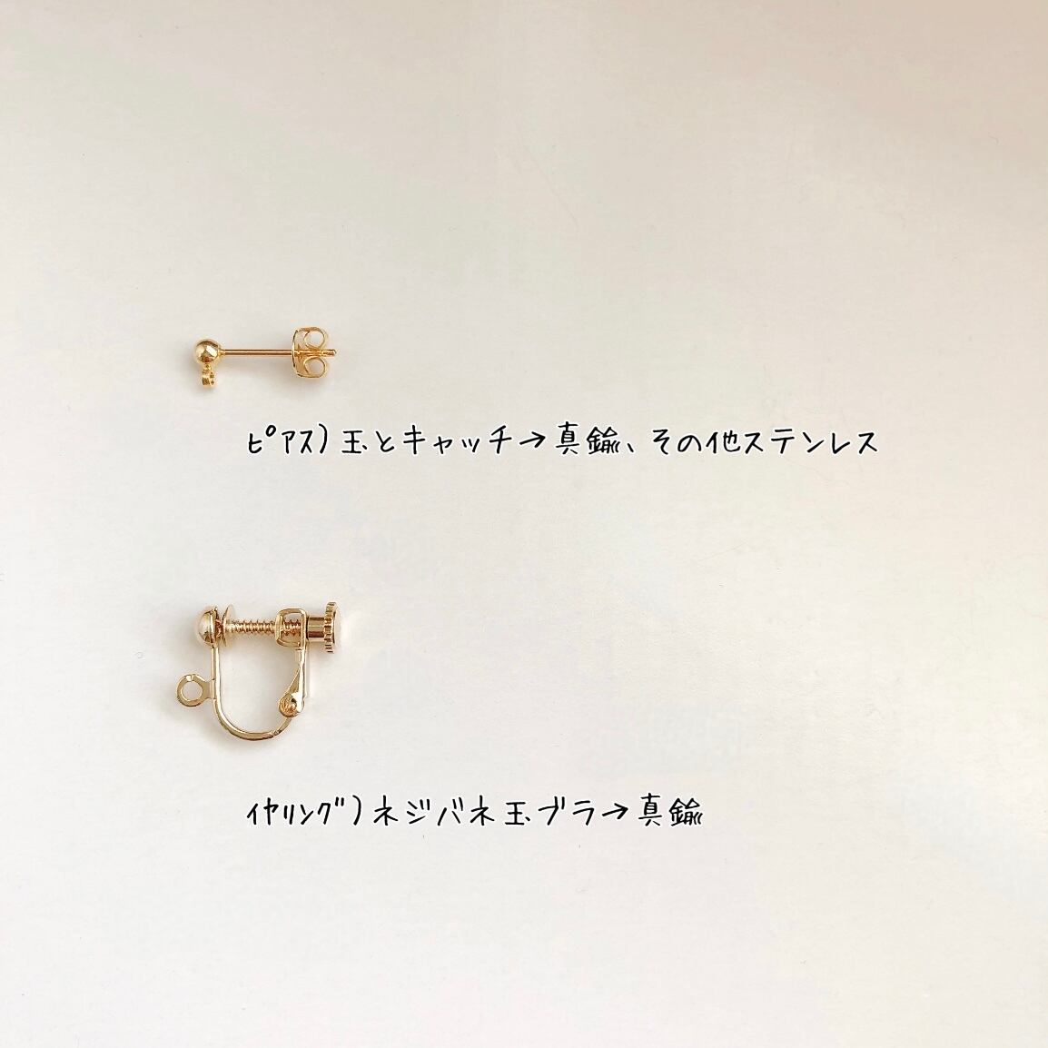 ピアス)玉とキャッチ→真鍮、その他ステンレス