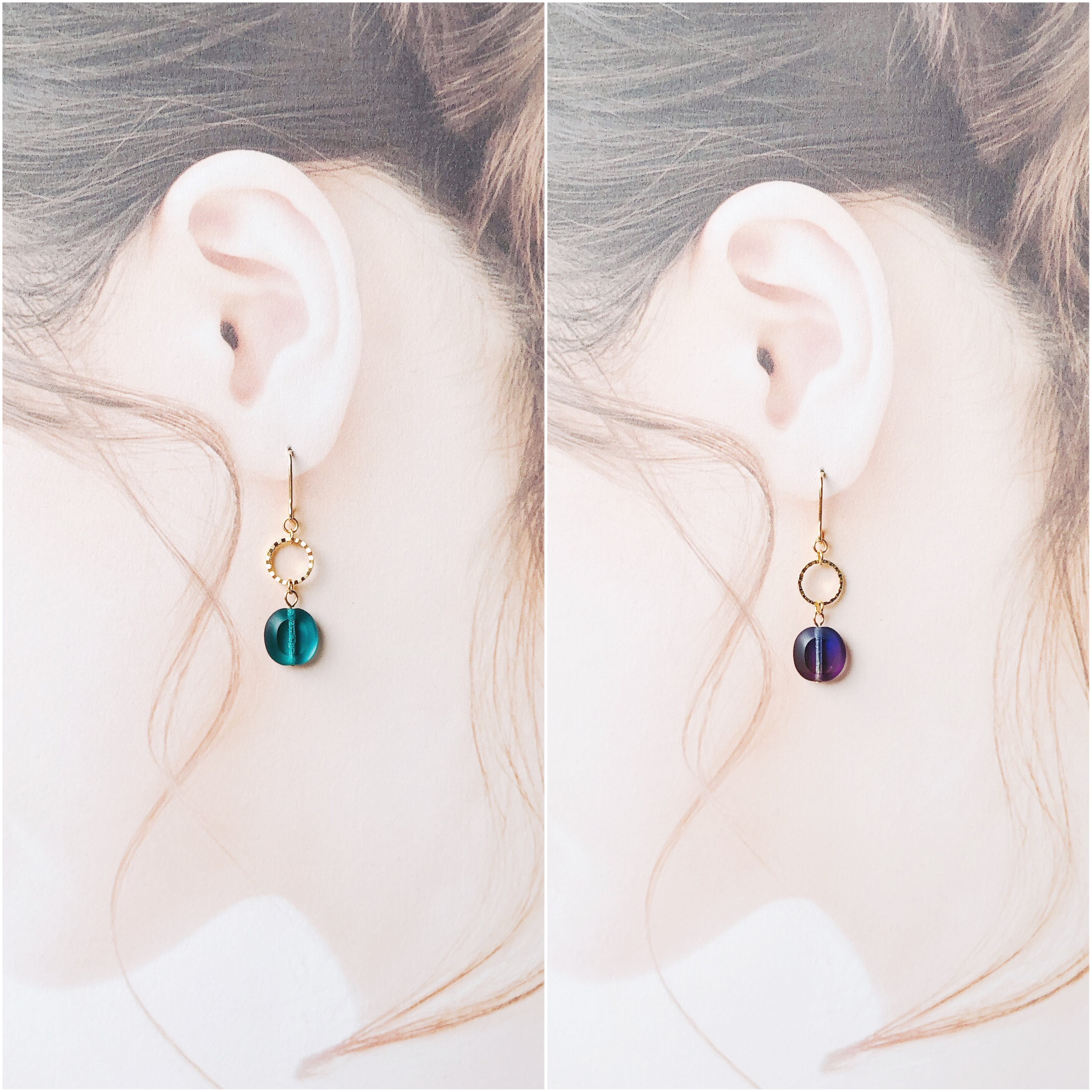 そのままの状態から差し込むだけで簡単にイヤリングに変えられます。