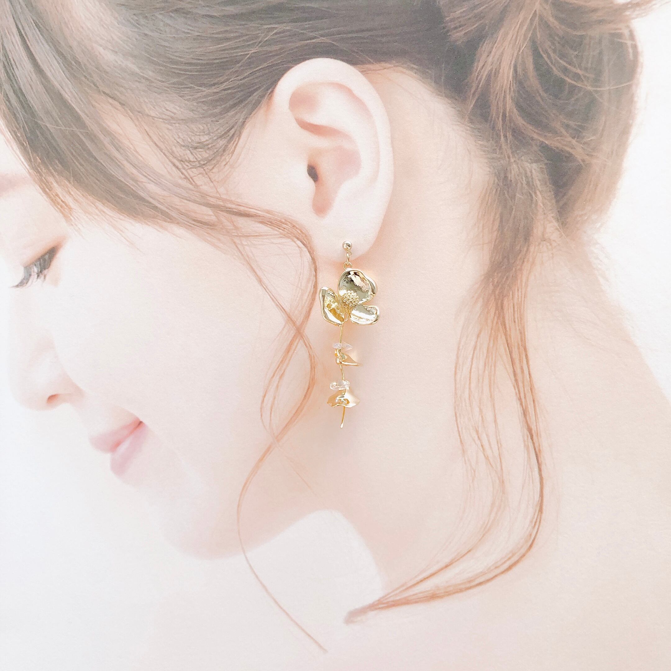 そのままの状態から差し込むだけで簡単にイヤリングに変えられます。