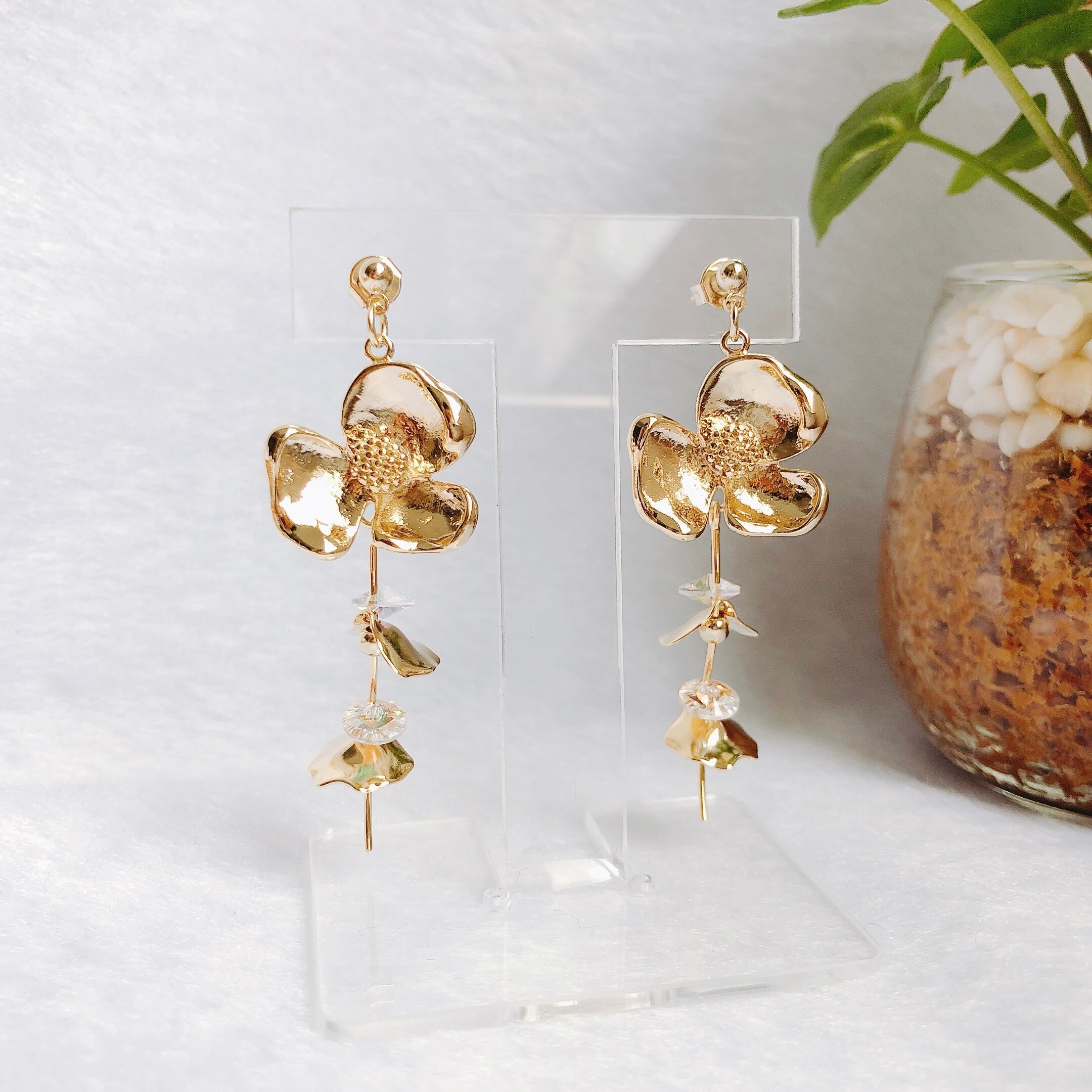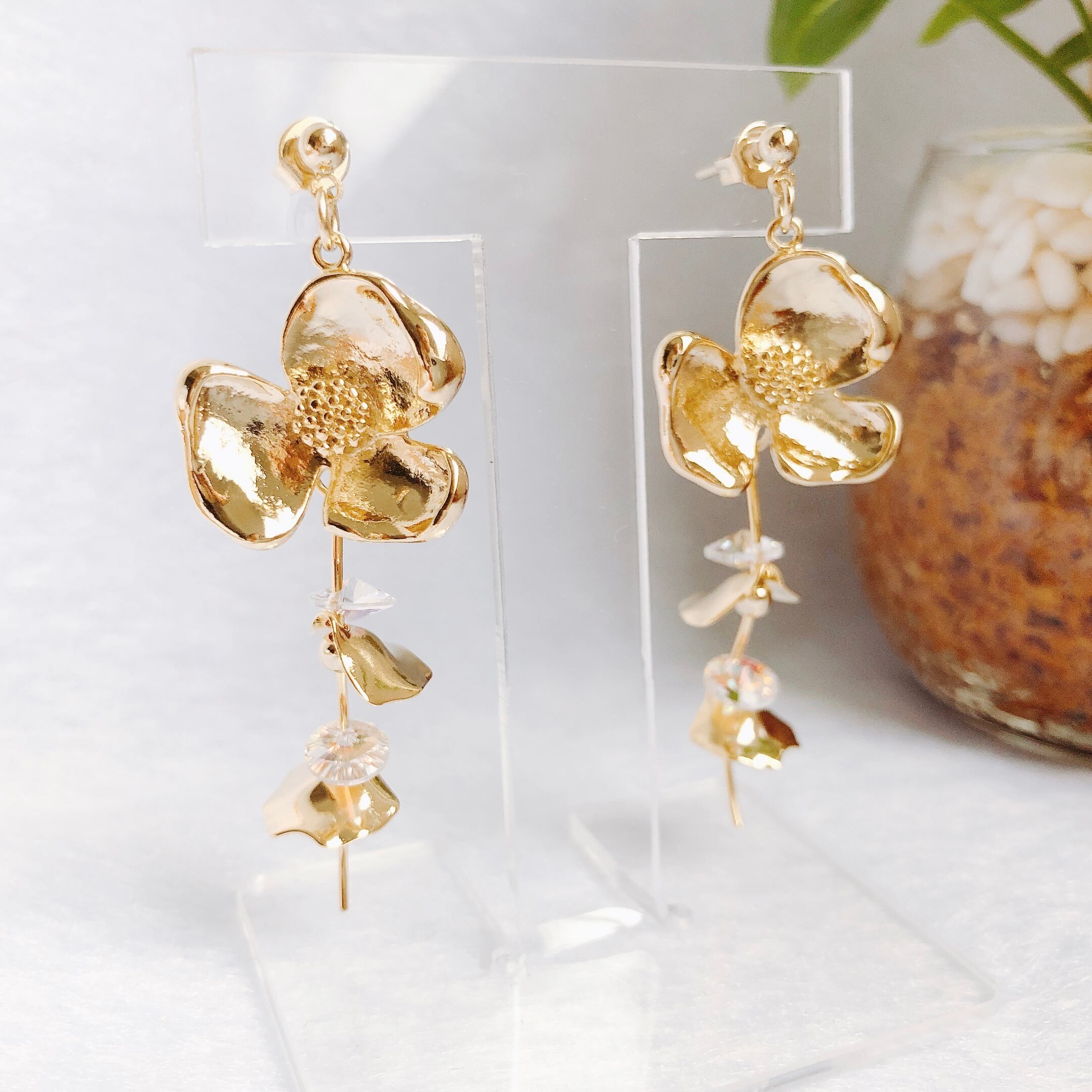 クリスタルも使い、キラキラ上品に光るピアスに仕上げました✴︎