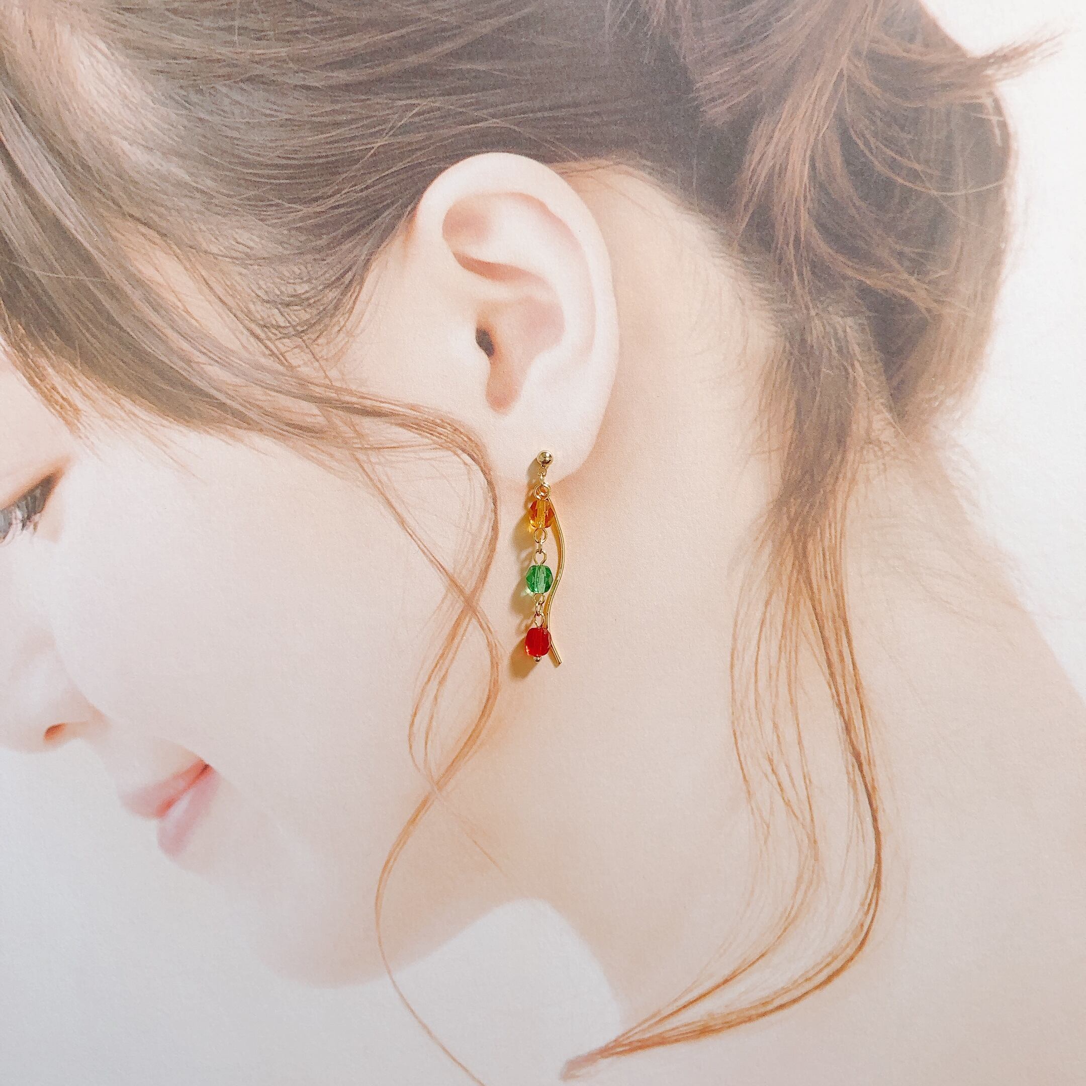 そのままの状態から差し込むだけで簡単にイヤリングに変えられます。