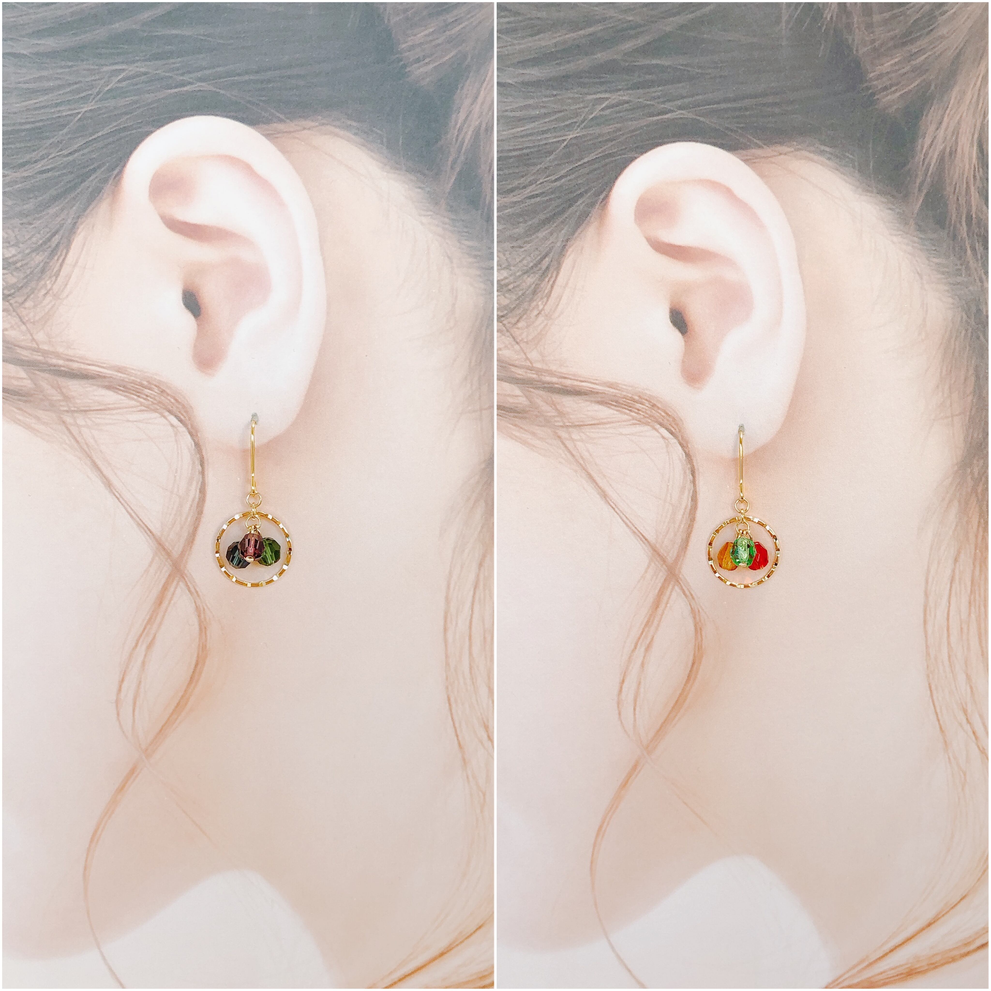 そのままの状態から差し込むだけで簡単にイヤリングに変えられます。