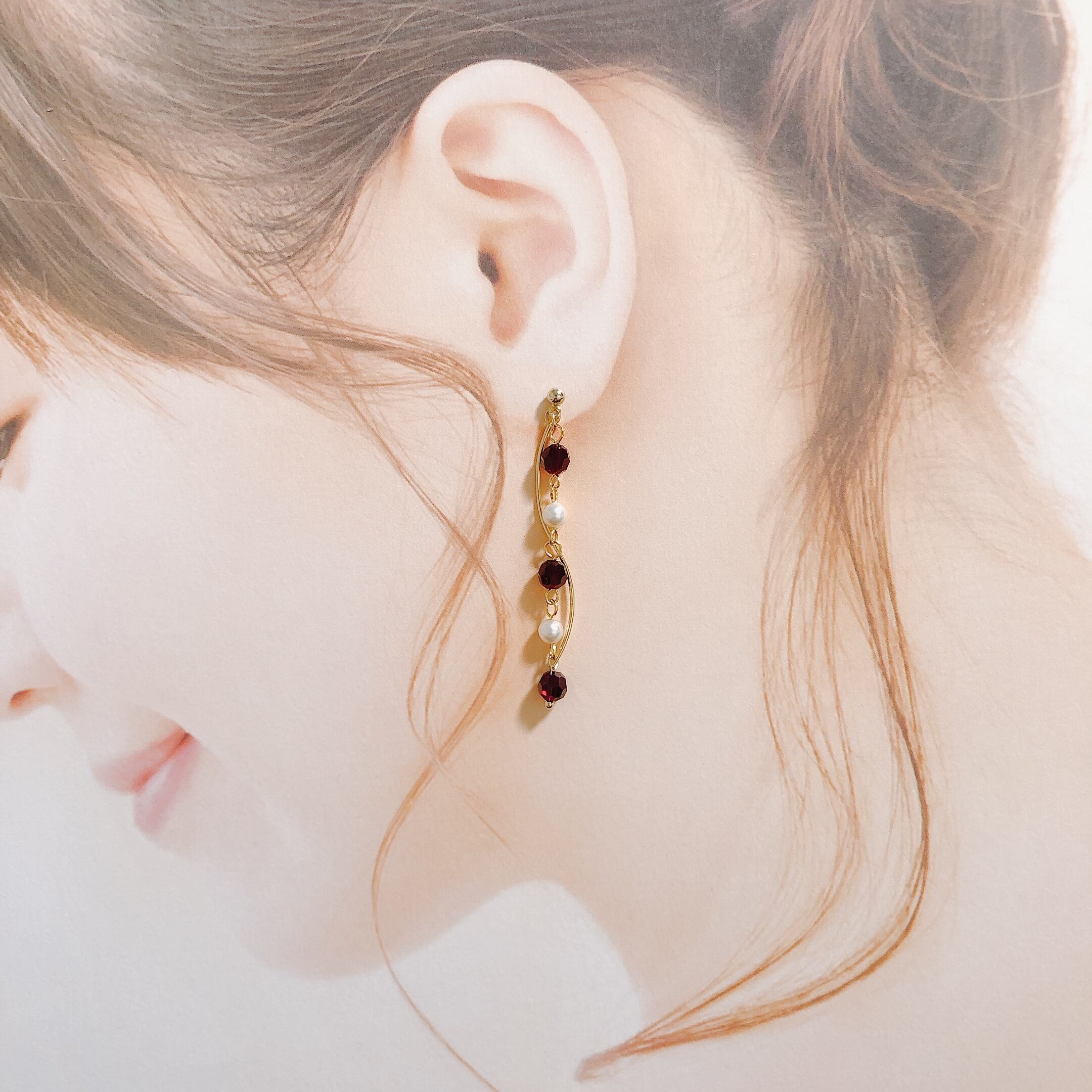 スワロフスキーレッド×パールがゆらゆら揺れ、