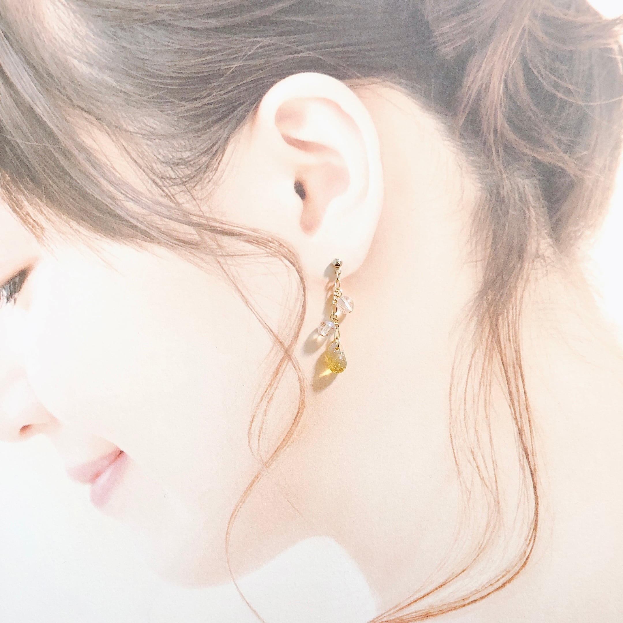 そのままの状態から差し込むだけで簡単にイヤリングに変えられます。
