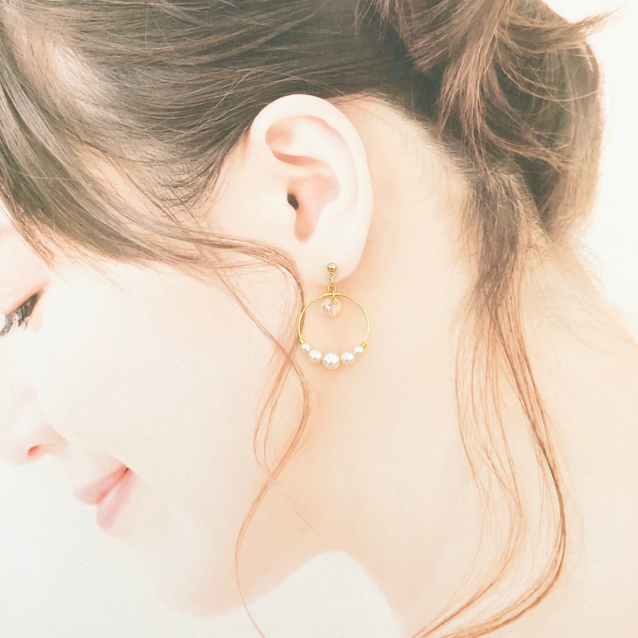 そのままの状態から差し込むだけで簡単にイヤリングに変えられます。