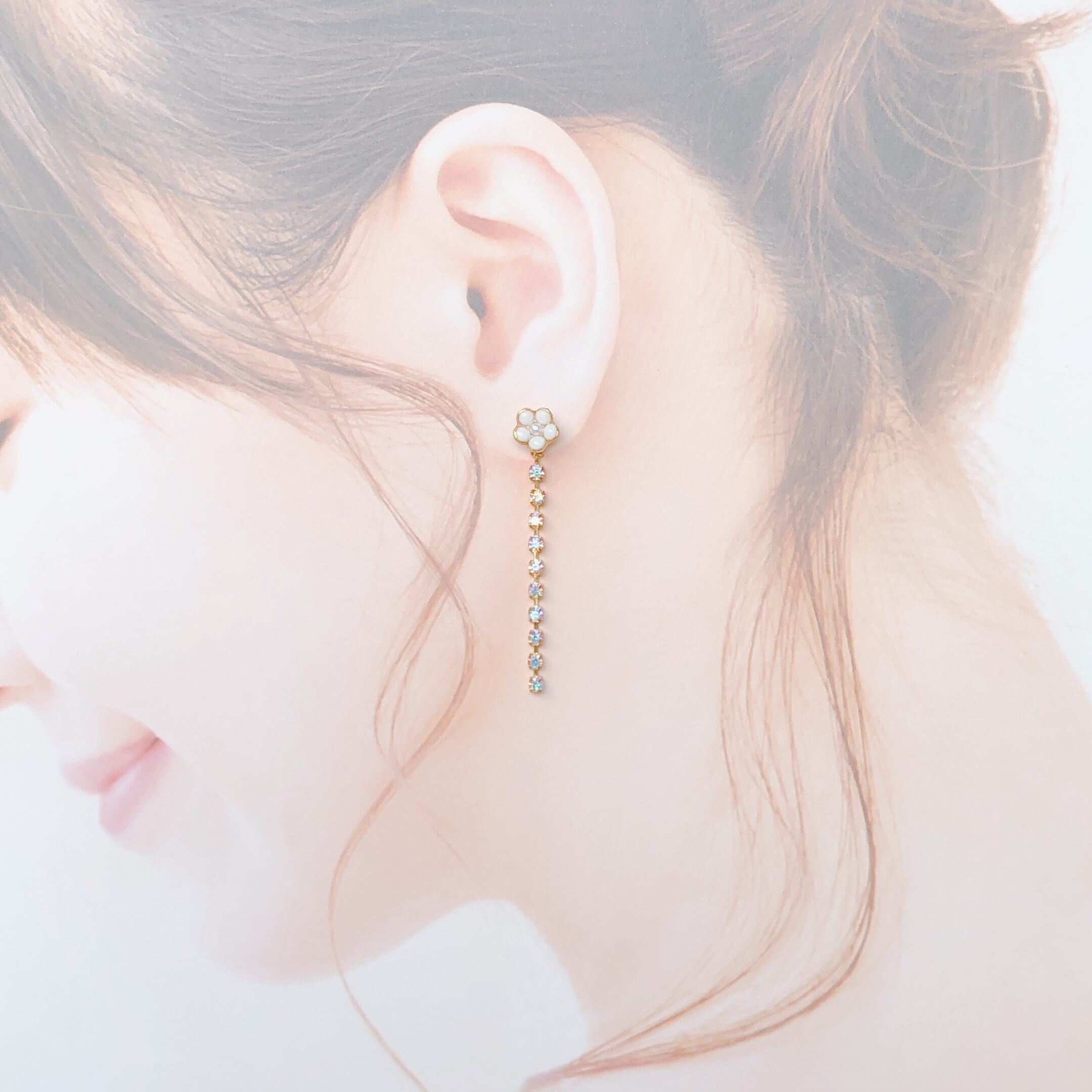 そのままの状態から差し込むだけで簡単にイヤリングに変えられます。