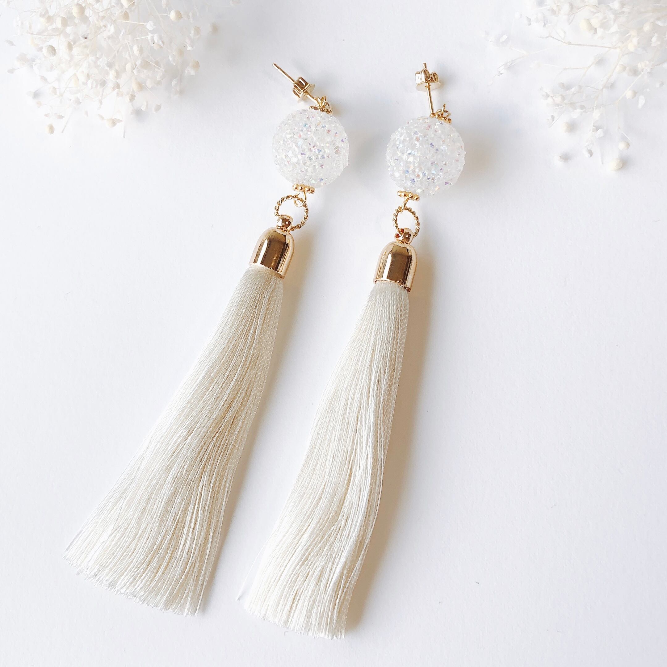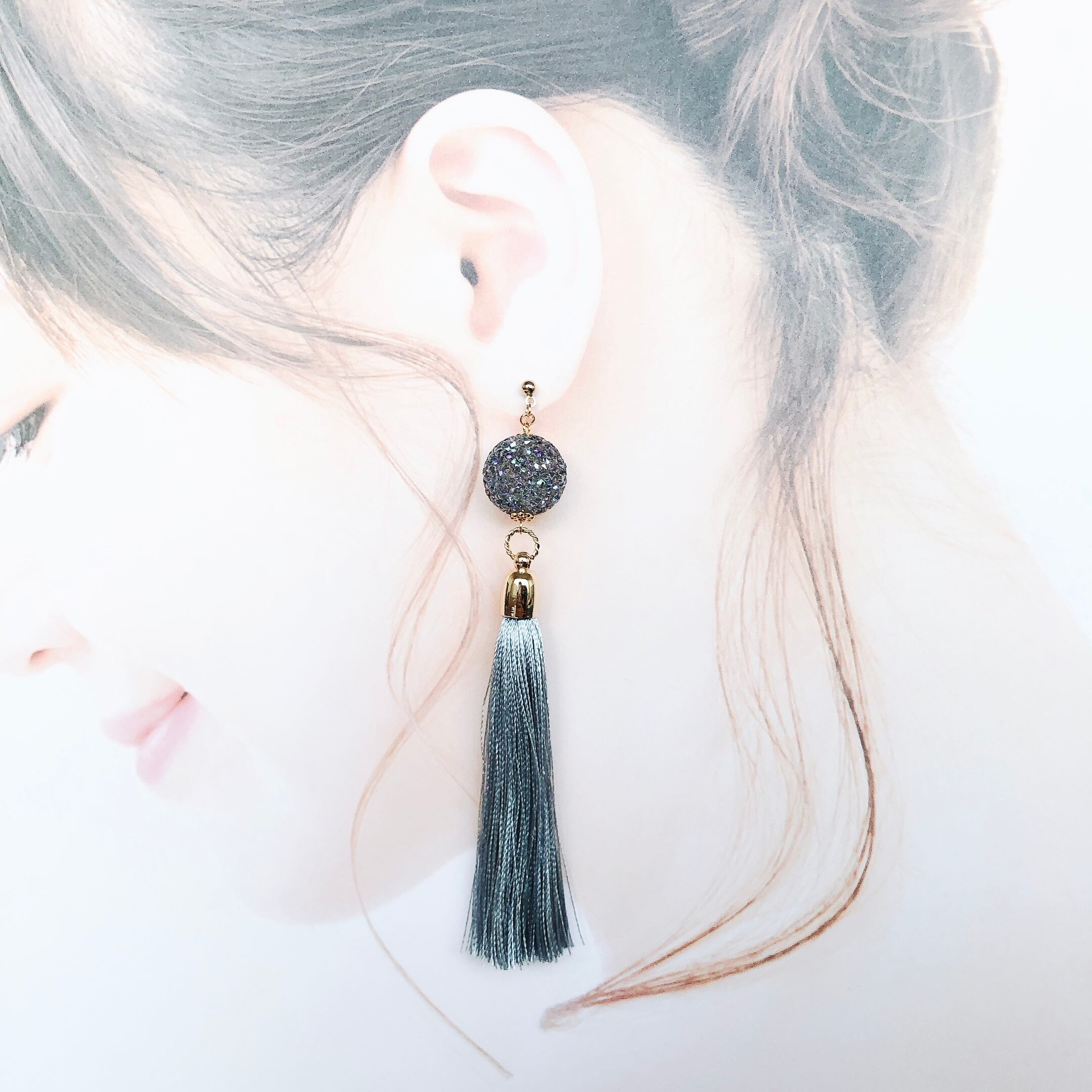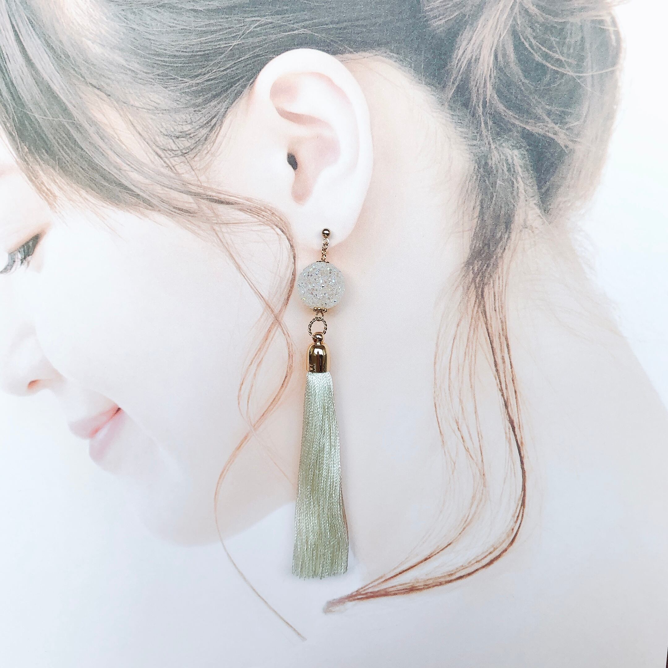 “オフホワイト色”のタッセルを使ったピアス。