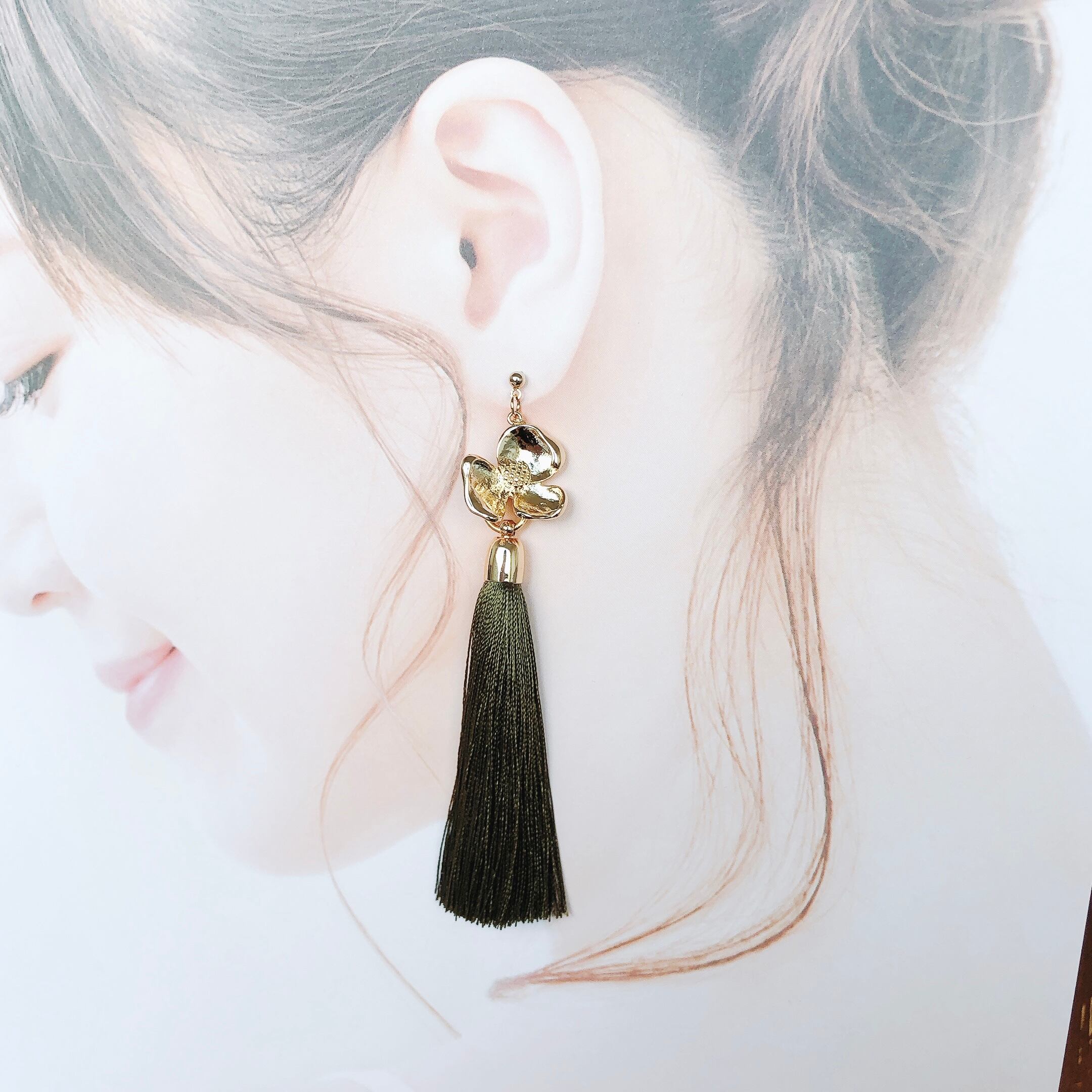 “カーキ色”のタッセルを使ったピアス⚘⠜