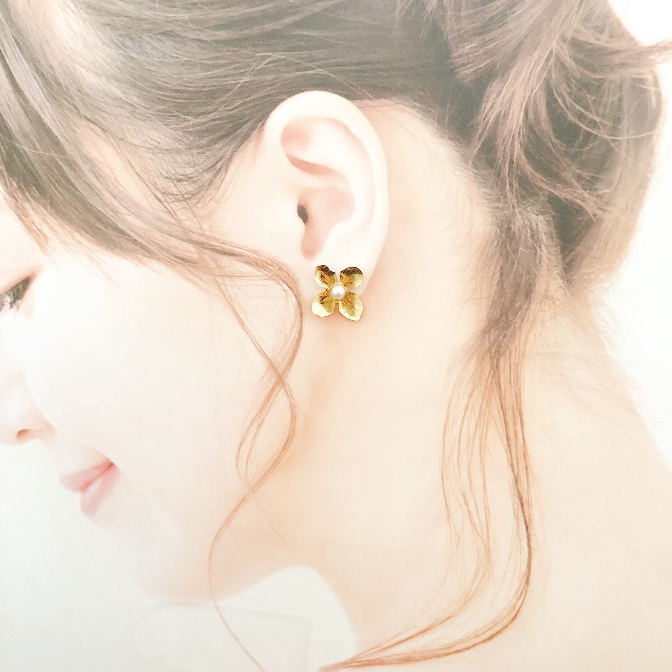 Goldの存在感ある花ピアス⚘⠜