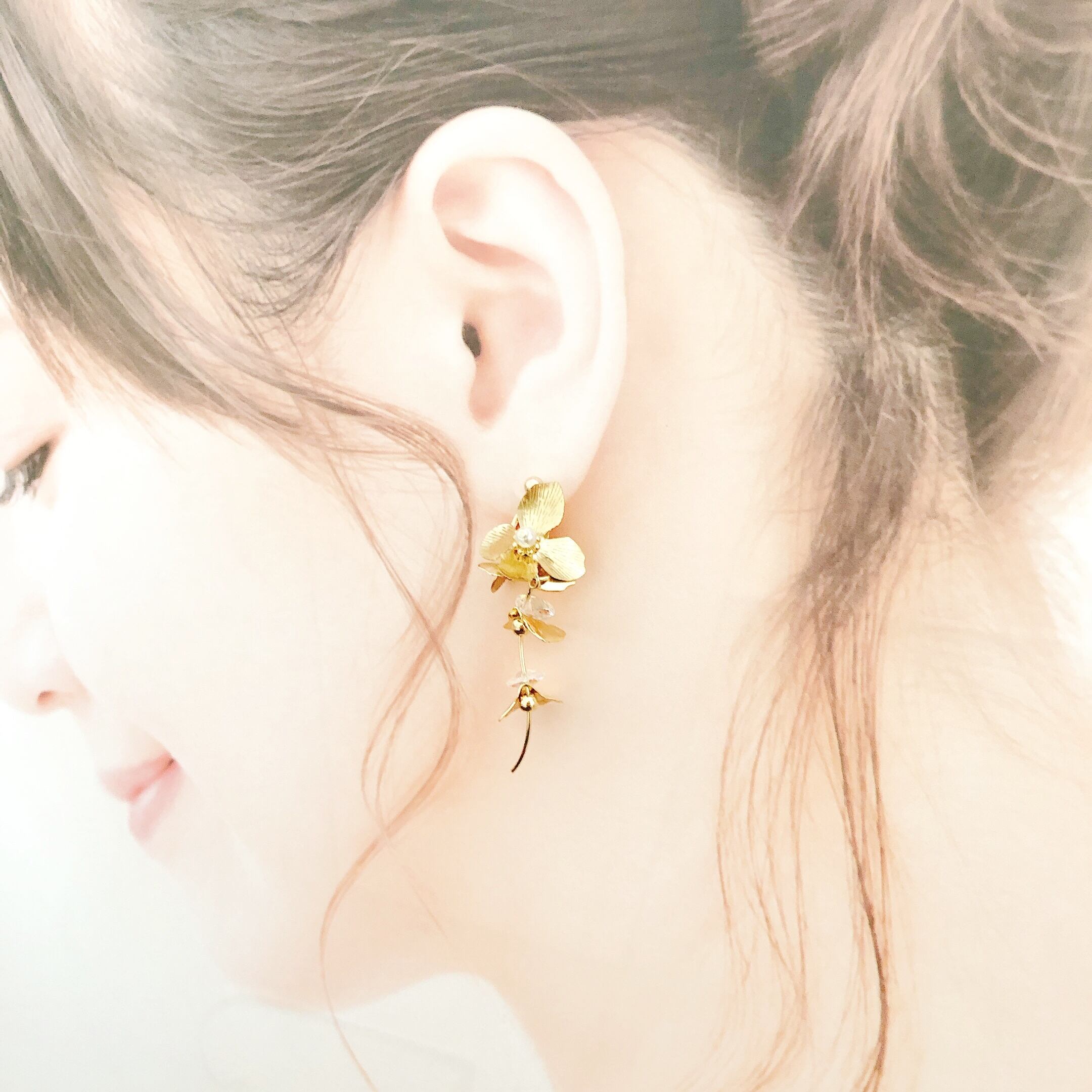 クリスタルも使い、キラキラ上品に光るピアスに仕上げました✴︎